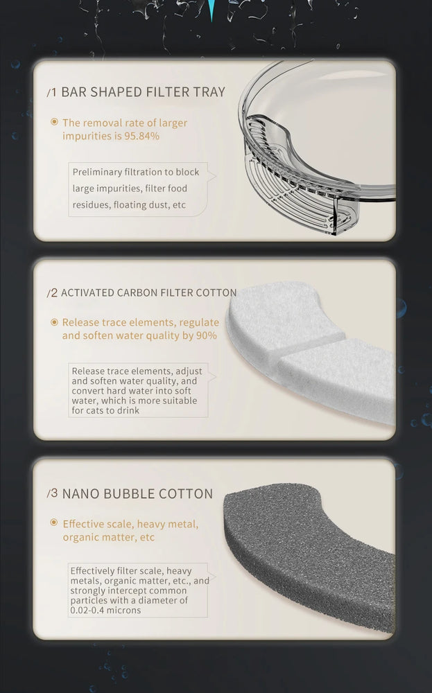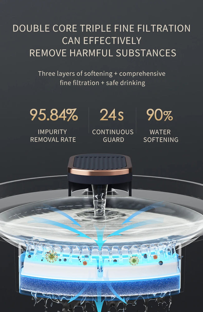 Diseño Inteligente: Su diseño compacto y elegante se adapta a cualquier hogar, mientras que su sistema de flujo continuo anima a las mascotas a beber más agua, ayudando a prevenir problemas de salud relacionados con la deshidratación.