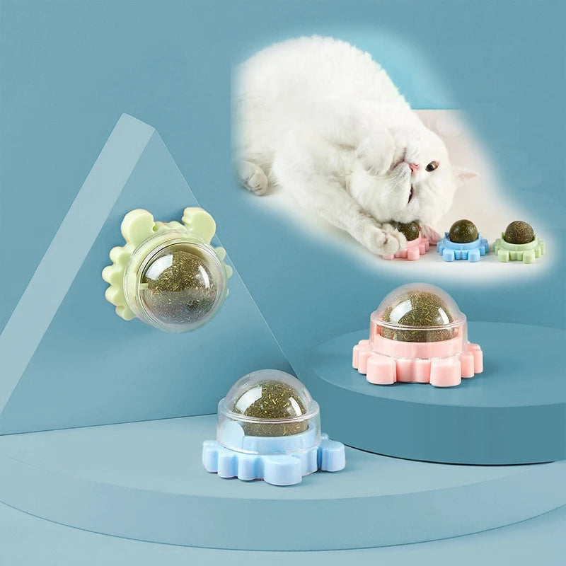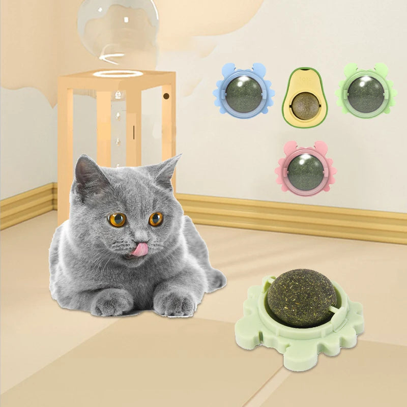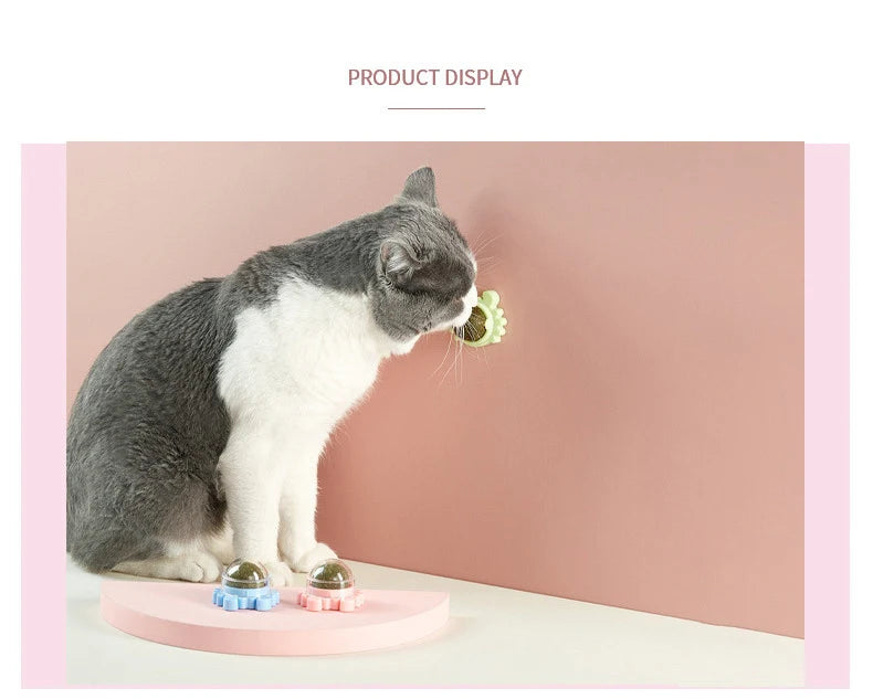 Diseño Rotatorio: La estructura giratoria permite que tu gato disfrute de una experiencia de juego dinámica, mejorando su agilidad y coordinación mientras intenta alcanzar y lamer la bola.