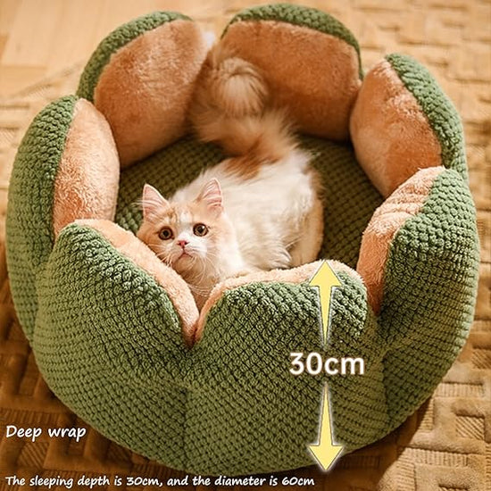 Especificación: Nombre: Cactus Shape Cat Bed Color: verde, morado, gris, marrón Material del producto: terciopelo de coral, poliéster, algodón de PP Tamaño del producto: S: El diámetro máximo: 40 cm/15.7in M: El diámetro máximo: 50 cm/19.6in L: El diámetro máximo: 60 cm/23.6in