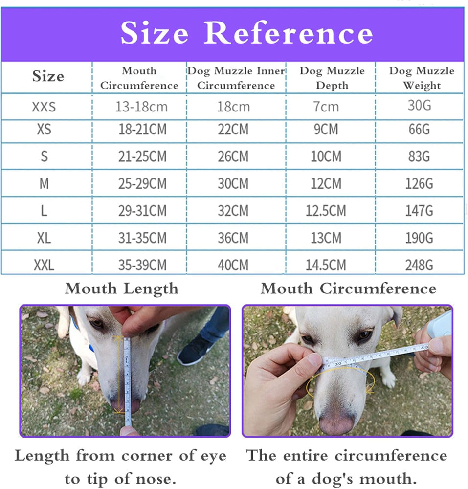 ◎ Recordatorio cálido: 1. Sobre el tamaño: elija el bozal que se adapte a la mouth del perro según el tamaño de la mouth del perro. 2. Sobre el error: medición manual, hay un ligero error, prevalecerá el producto real. 3. Respecto a la diferencia de color: debido a diferentes factores como la luz y la pantalla, el color de la pantalla diferente, prevalecerá el producto real. 4. Nota: El bozal no es adecuado para uso prolongado. Si durante mucho tiempo, debe prevalecer la respuesta de comodidad del perro. 5. Cómo usarlo por primera vez: El perro necesita probárselo muchas antes de acostumbrarse. Ten paciencia e inténtalo una y otra vez hasta que el perro ya no una reacción de rechazo al bozal.