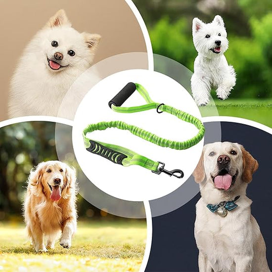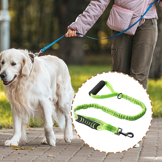 La correa para perros que absorbe los golpes es imprescindible para perros medianos y pequeños que aman correr Con su diseño reflectante de doble cara, garantiza la seguridad durante los paseos nocturnos. La correa también reduce la presión tanto para el dueño como para el perro, haciendo que los paseos sean agradables para ambos. Fácil de usar y fiable para un uso duradero.